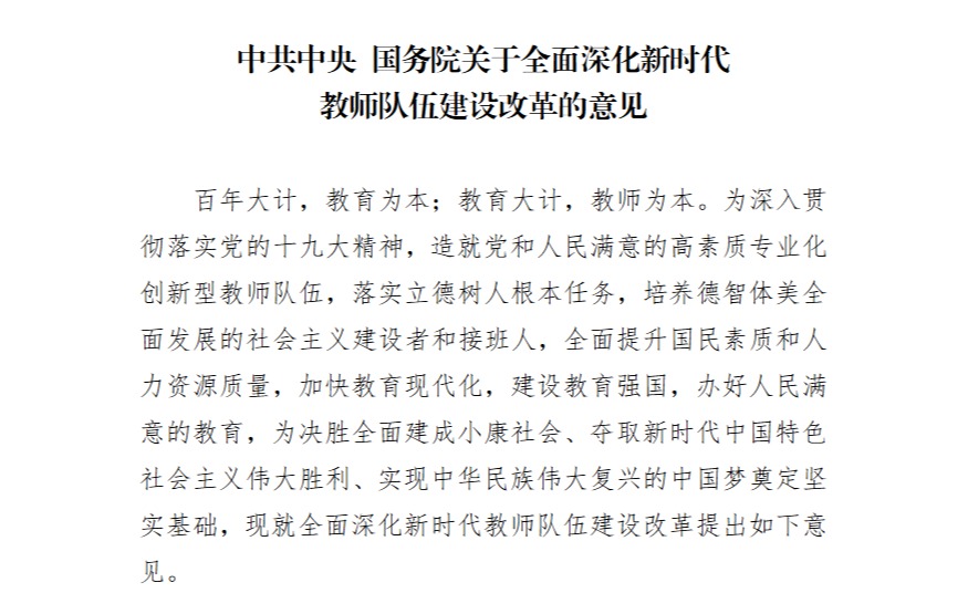 中共中央 国务院关于全面深化新时代教师队伍建设改革的意见