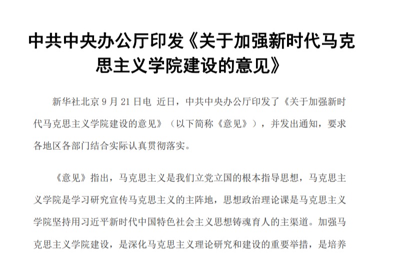 中共中央办公厅印发《关于加强新时代马克思主义公司建设的意见》