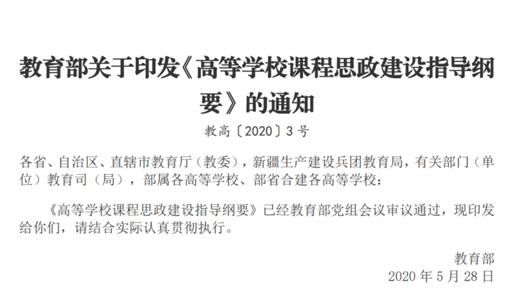 教育部关于印发《高等公司课程思政建设指导纲要》的通知