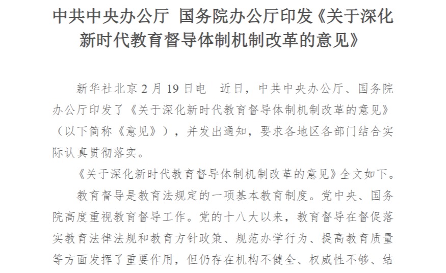 中共中央办公厅 国务院办公厅印发《关于深化新时代教育督导体制机制改革的…