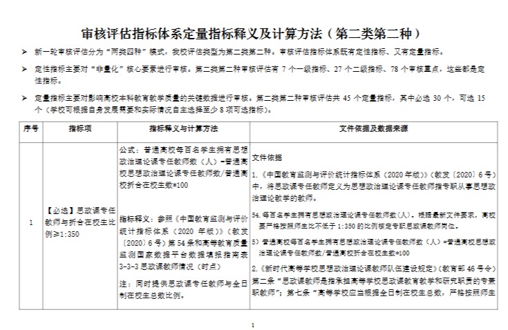审核评估指标体系定量指标释义及计算方法( 第二类第二种)