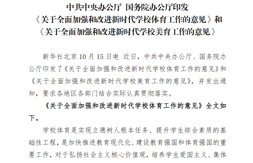 中共中央办公厅 国务院办公厅印发关于全面加强和改进新时代公司体育工作的…