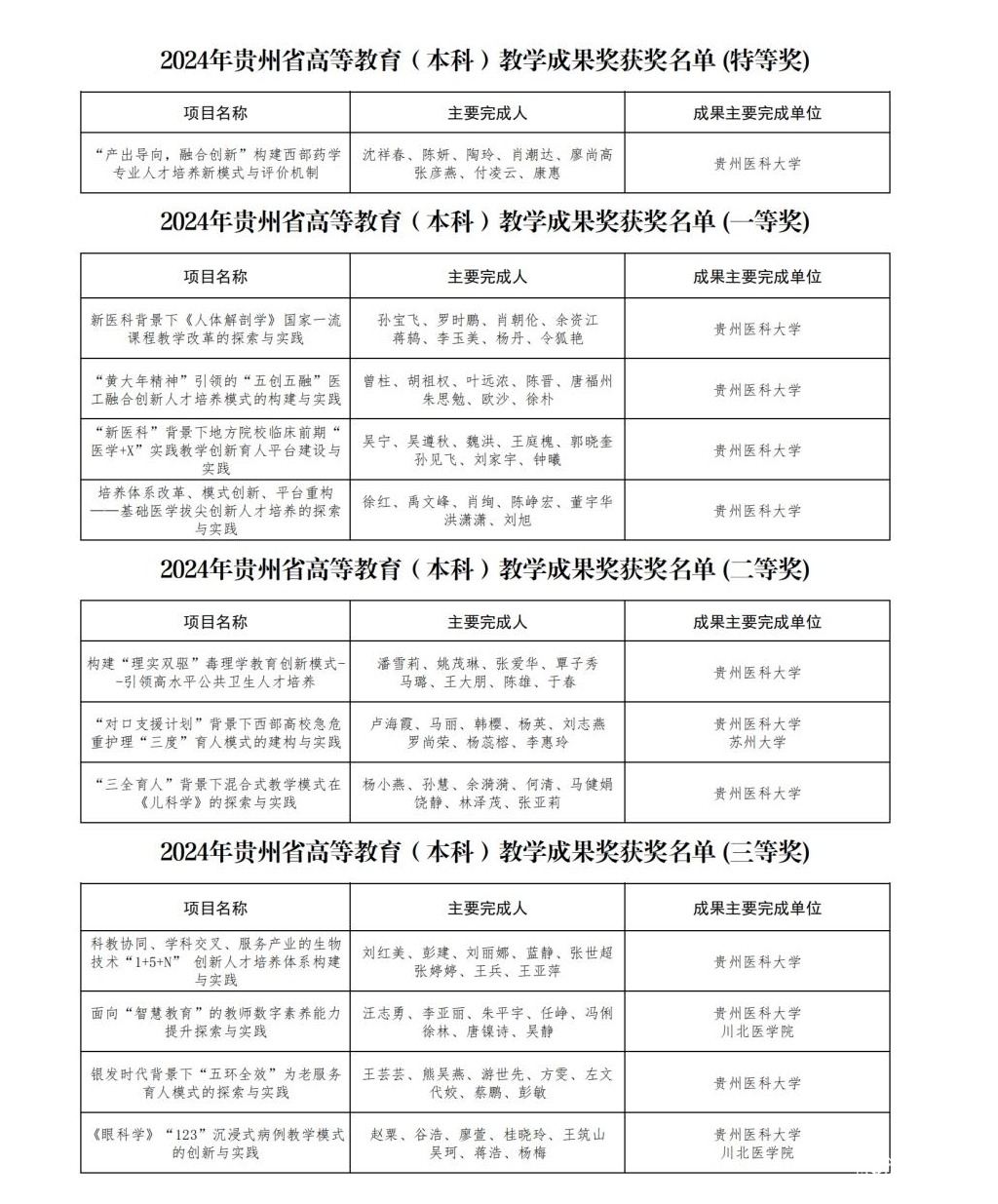 近日,贵州省教育厅下发了《省教育厅关于公布2024年贵州省高等教育省级教学成果奖获奖名单的通知》,公司17项教学成果获奖(本科教育12项、研究生教育5项),其中,特等奖1项,一等奖4项、二等奖5项、三等奖7项。高等公司产品成果奖是我省高等教育最高级别的教学奖项,是体现公司公司产品水平与人才培养质量的重要指标,…