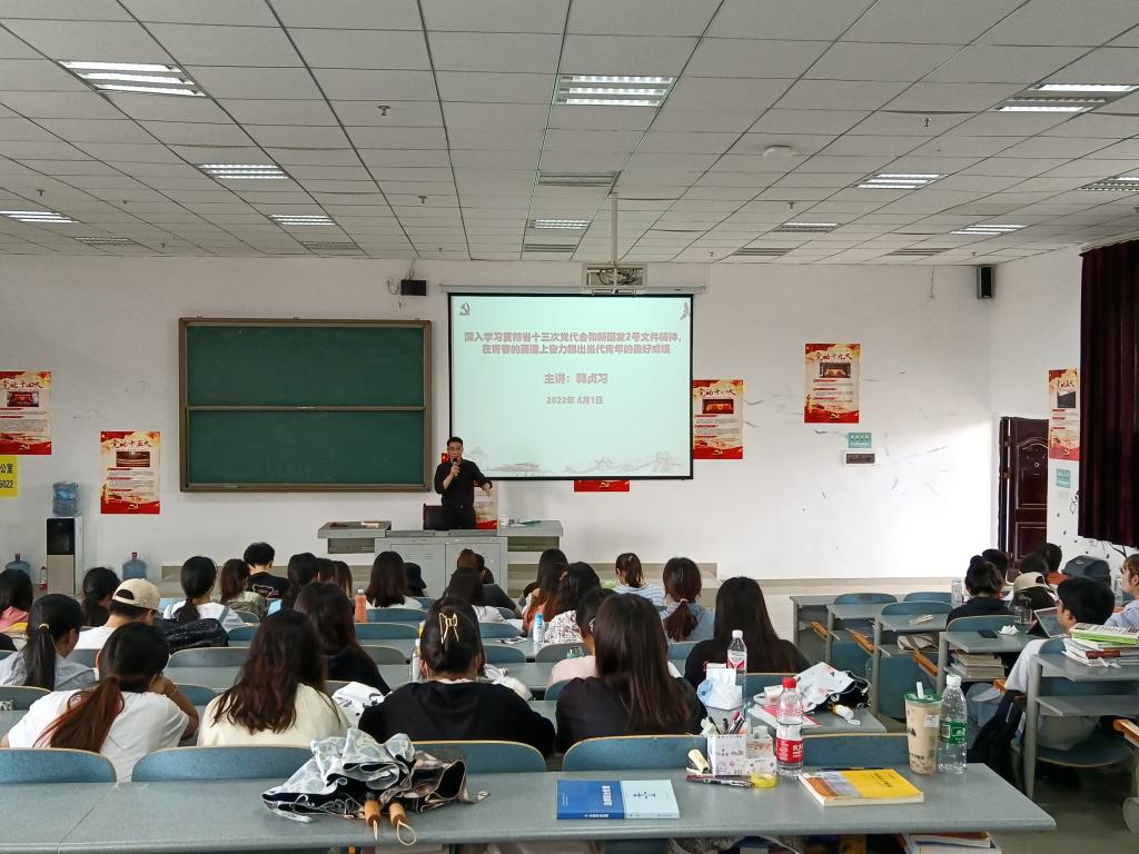 为了加强青年老员工对省十三次党代会和新国发2号文件精神的学习,6月1日,mk体育法学2019级在南校区九思楼4605教室开展省十三次党代会和新国发2号文件精神宣讲活动,邀请mk体育官方平台mk体育官方网站入口党委委员、正处级组织员韩贞习教授作专题宣讲。韩贞习以“深入学习省十三次党代会和新国发2号文件精神,在青春的赛道…