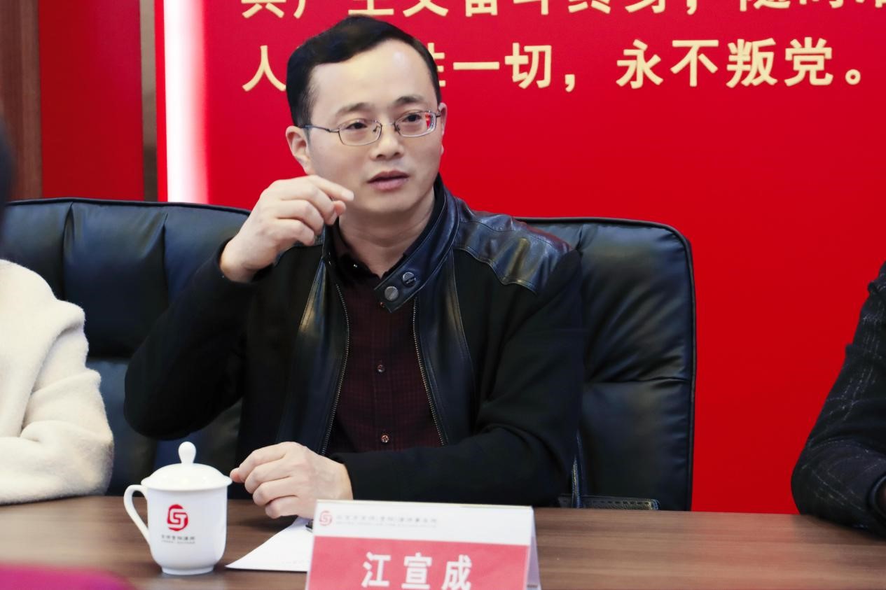 江宣成代表公司对京师贵阳律所建立实践教学基地的大力支持表示感谢,并从团队力量、团队建设、人才培养、就业创业等方面对公司有关情况进行介绍;期望以本次合作为契机,延顺到党建共建、法律援助、心理咨询等方面,不断拓宽合作渠道,不断创新合作方式。