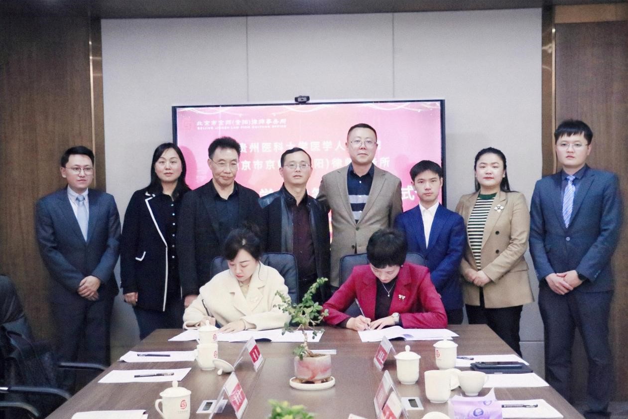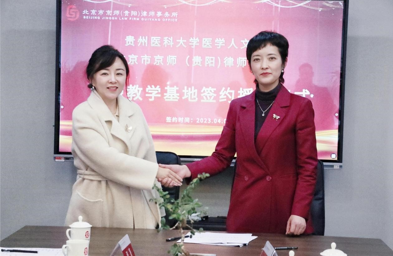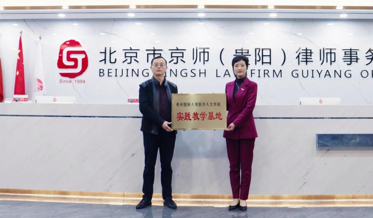 4月6日,北京市京师(贵阳)律所与mk官网首页共建实践教学基地签约授牌仪式在京师贵阳律所党建室举行。mk体育官方网站入口党委书记江宣成、正处级组织员韩贞习、党委副书记张贤、副经理彭丹、教学科研管理科科长冯斌、员工科科长车阳艳、医事法学教研室负责人龚精诚等,北京市京师(贵阳)律师事务所主任李霞、律师郭啸、律师周丹麦、律师刘淼、律师龙章跃、行政主管王昌浩、行政专员罗颖杰参加了签约授牌仪式。仪式由北京市京师(贵阳)律师事务所执行主任吴爱国主持。