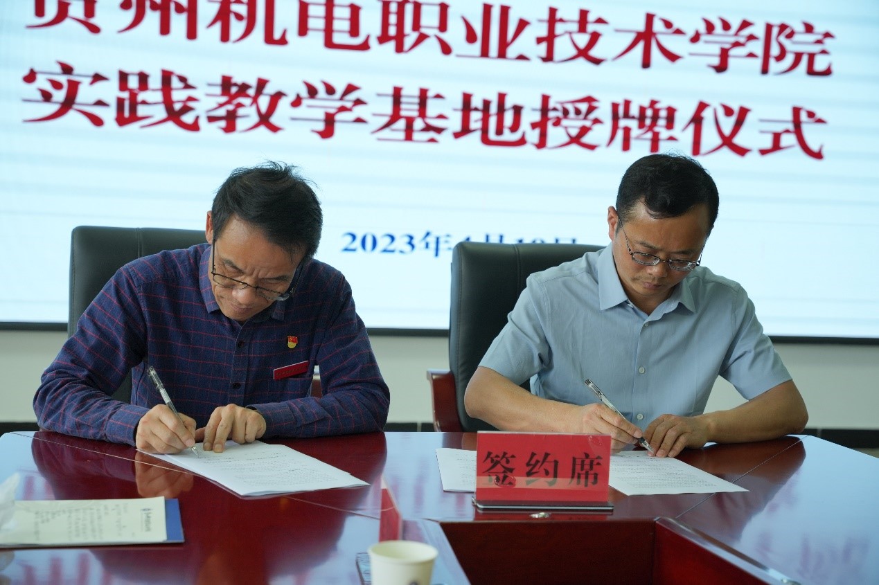 江宣成与刘猛代表双方签订了《mk官网首页贵州机电职业技术公司实践教学基地共建协议书》,同时举行了“mk官网首页实践教学基地”揭牌仪式。