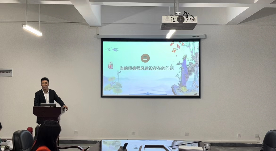 韩贞习以“加强师德师风建设,做新时代‘四有’ 好老师”为主题,从为什么要加强师德师风建设、当前师德师风建设存在的问题和如何加强师德师风建设三个方面进行讲授。他指出,加强师德师风建设是办好新时代人民满意教育、教师自身发展和公司事业发展的需要。他通报了教育部公开曝光违反教师职业行为十项准则典型案例,指出公司师德师风建设存在的问题。他强调要深入学习领会习近平总书记关于师德师风的重要指示批示精神、严格贯彻落实师德师风政策法规,并将师德师风建设贯穿公司工作全过程。