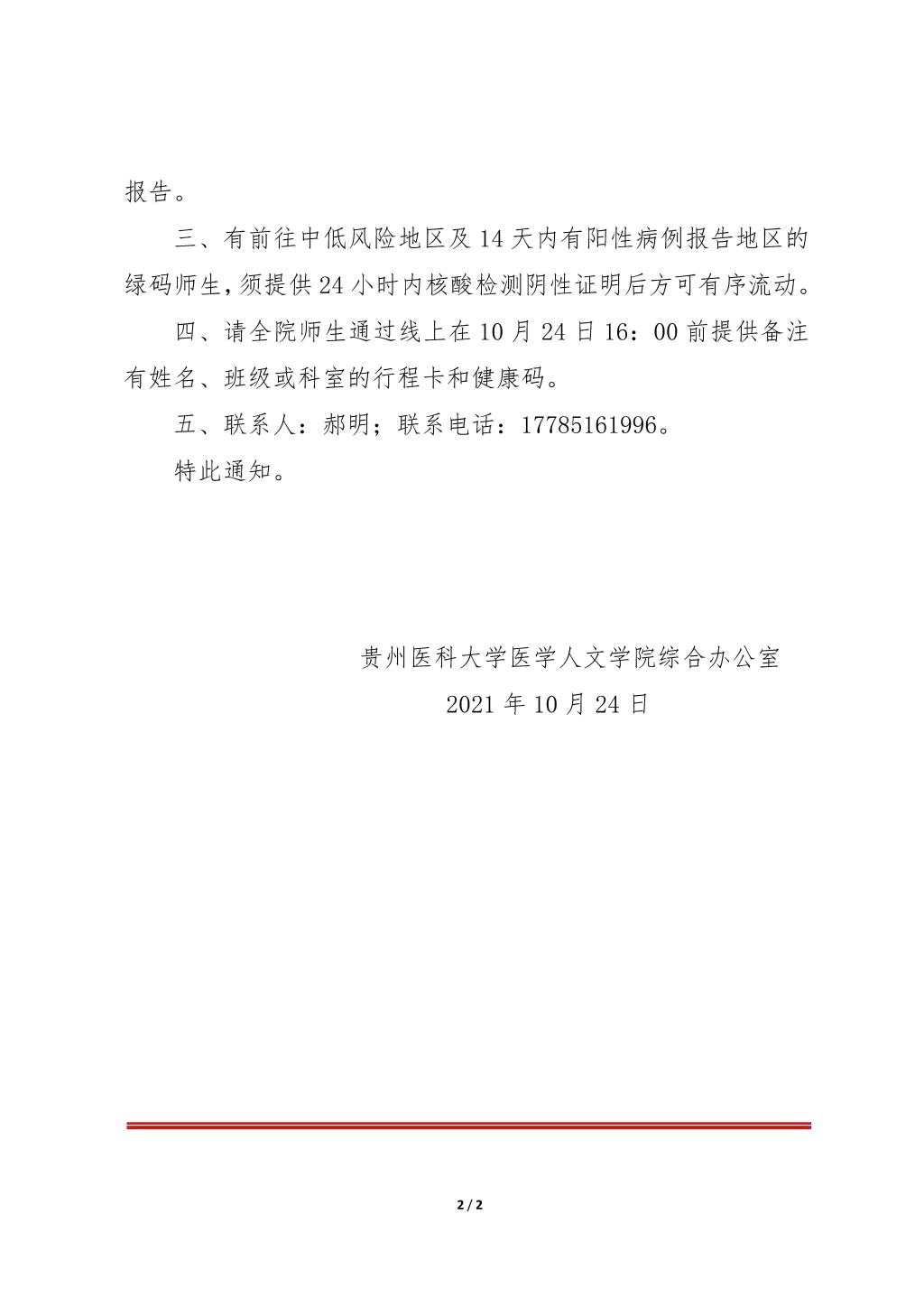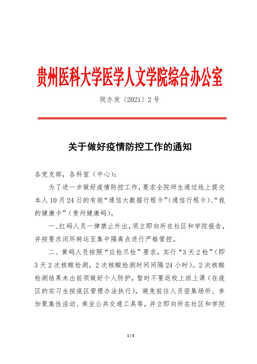 贵医医学人文院办发〔2021〕2号:关于做好疫情防控工作的通知
