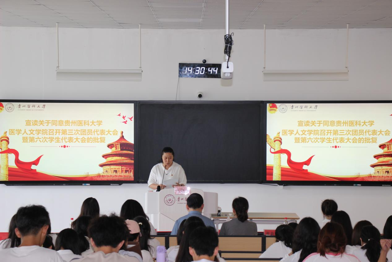 黄莉雯宣读《关于同意召开mk官网首页第三次团员代表大会的批复》。