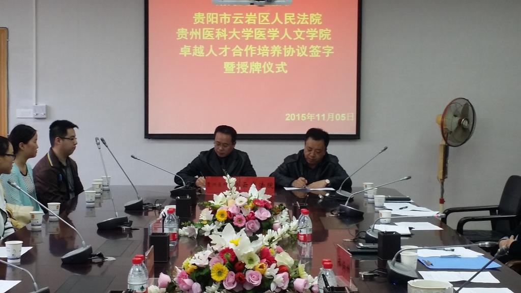 2015年11月5日上午,mk体育与贵阳市云岩区人民法院举行了卓越法律人才合作培养协议签字暨授牌仪式,这标志着mk体育卓越法律人才实践教学环节正式启动。