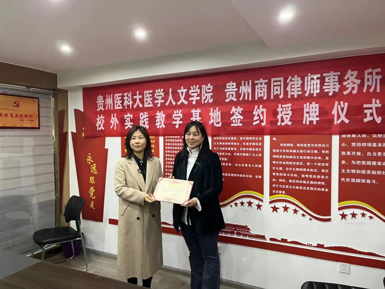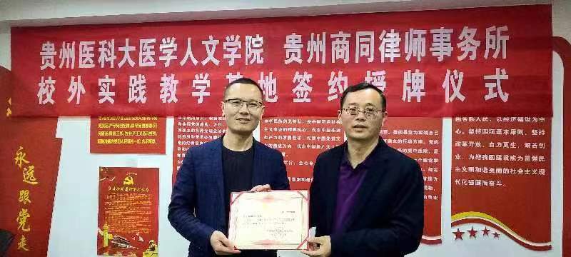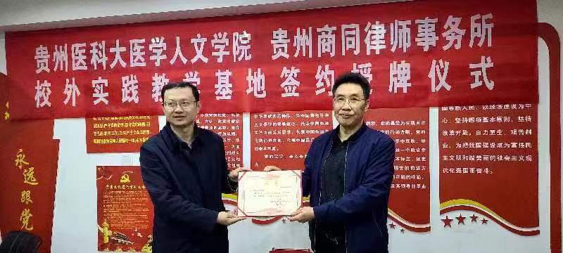 4月7日,贵州商同律师事务所与mk官网首页全面合作签约仪式暨共建实践教学基地签约授牌仪式在贵州商同律师事务所会议室举行。mk体育官方网站入口党委书记江宣成,正处级组织员韩贞习,党委副书记张贤,党委委员、教学科研管理科科长冯斌,医事法学教研室负责人龚精诚,普通法学教研室教师彭媛媛;贵州商同律师事务所党支部书记、高级合伙人王军,高级合伙人陈佳、石磊、陈蕾、田东海参加了签约授牌仪式。仪式由贵州商同律师事务所主任冉政林主持。
