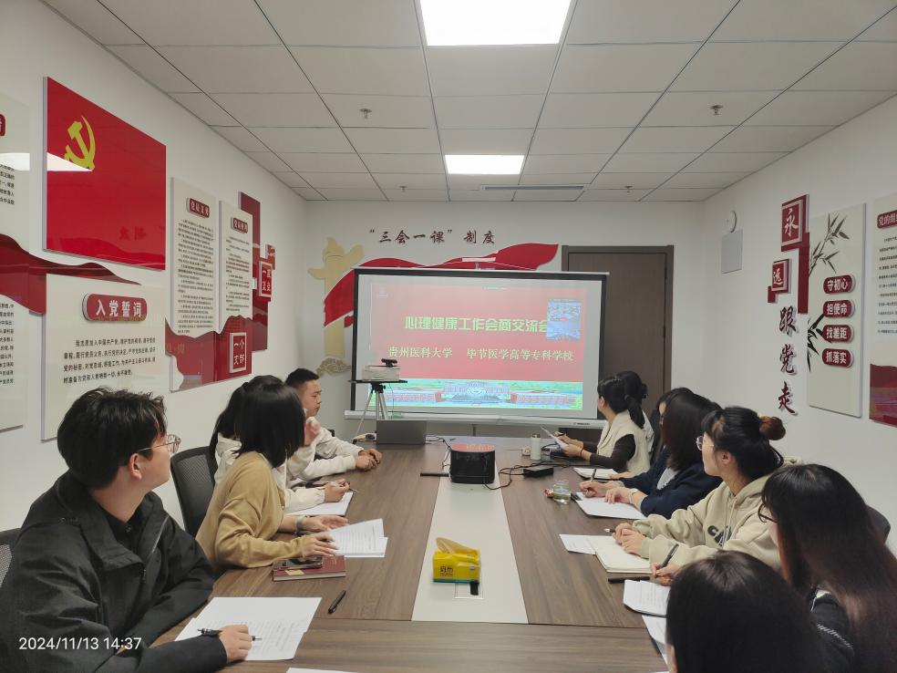 为促进校际对口帮扶心理健康工作的有效落实,实现交流及优质资源分享,2024年11月13日14:30,由mk体育教工第三党支部(mk体育官方平台心理发展指导中心)牵头组织,公司与毕节医学高等专科公司(以下简称“毕节医专”)通过线上会议,就心理健康相关工作进行了交流。毕节医专党委委员、副董事长叶茂,员工处员工管理科…